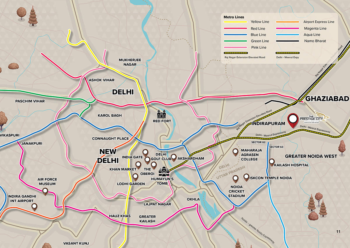 Downlaod Brochure.PDFThe Prestige City Ghaziabad is an expansive 62.5-acre integrated township located at Indirapuram Extension, NH-24, redefining urban luxury in one of Ghaziabad’s most promising corridors. This modern development comprises 4041 premium apartments spread across 23 high-rise towers, offering a refined lifestyle in thoughtfully designed 3 BHK and 4 BHK, Duplex and Penthouse. At the heart of this grand community lie two key residential enclaves—Mulberry and Oakwood at The Prestige City—each offering a range of stylish, spacious homes crafted for elevated living.